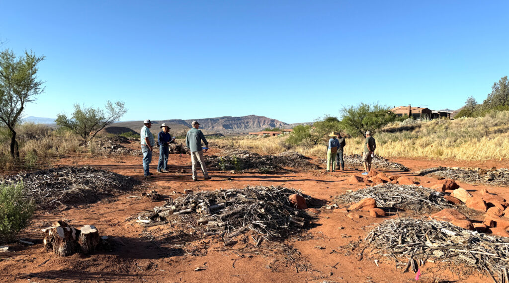 Such was one of several outcomes of a “walk and talk” in early July when board members of the Desert Preservation Initiative (DPI) met with local environmental and conservation experts. On hand for the meeting organized by DPI volunteer Shaunna Goldbery, a conservation botanist and science/STEAM educator, were Tyce Palmer, Utah Department of Agriculture and Food (UDAF), Zone 5 Conservation Director; Jake Benson, conservation planner with UDFA and the Natural Resources Conservation Service; Brad Winder, Washington County Department of Noxious Weeds Supervisor, and Chris Corville, Best Friends Animal Society, Kanab.