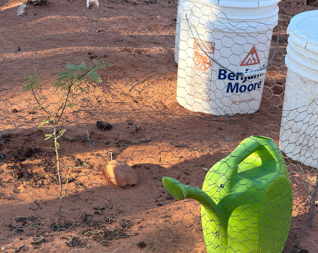 During the early morning visit to the Wisteria Way wash project site off of Cactus Gulch in the City of Ivins, the group discussed soil management and restoration efforts, a well as the possibility of drone seeding, the use of EDDMapS to track invasive species and apply for grant funding, and thoughts on tracking birds in the area.