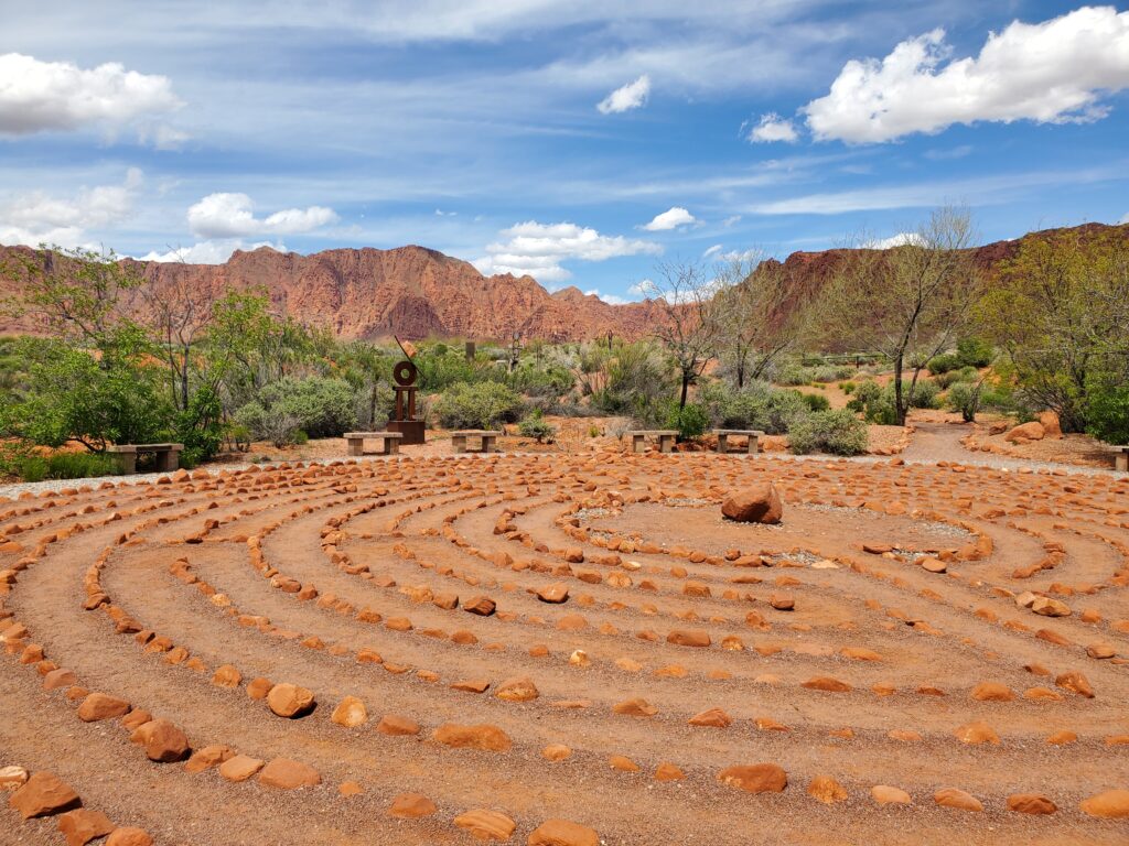 The beauty of southern Utah has inspired the work of many wonderful artists. The tranquility of Kayenta also inspires moments of reflection among both residents and visitors. These two impulses are intrinsically woven together in the peaceful vistas of the of the Desert Rose Labyrinth and Sculpture Garden across the street from Kayenta Arts Village.