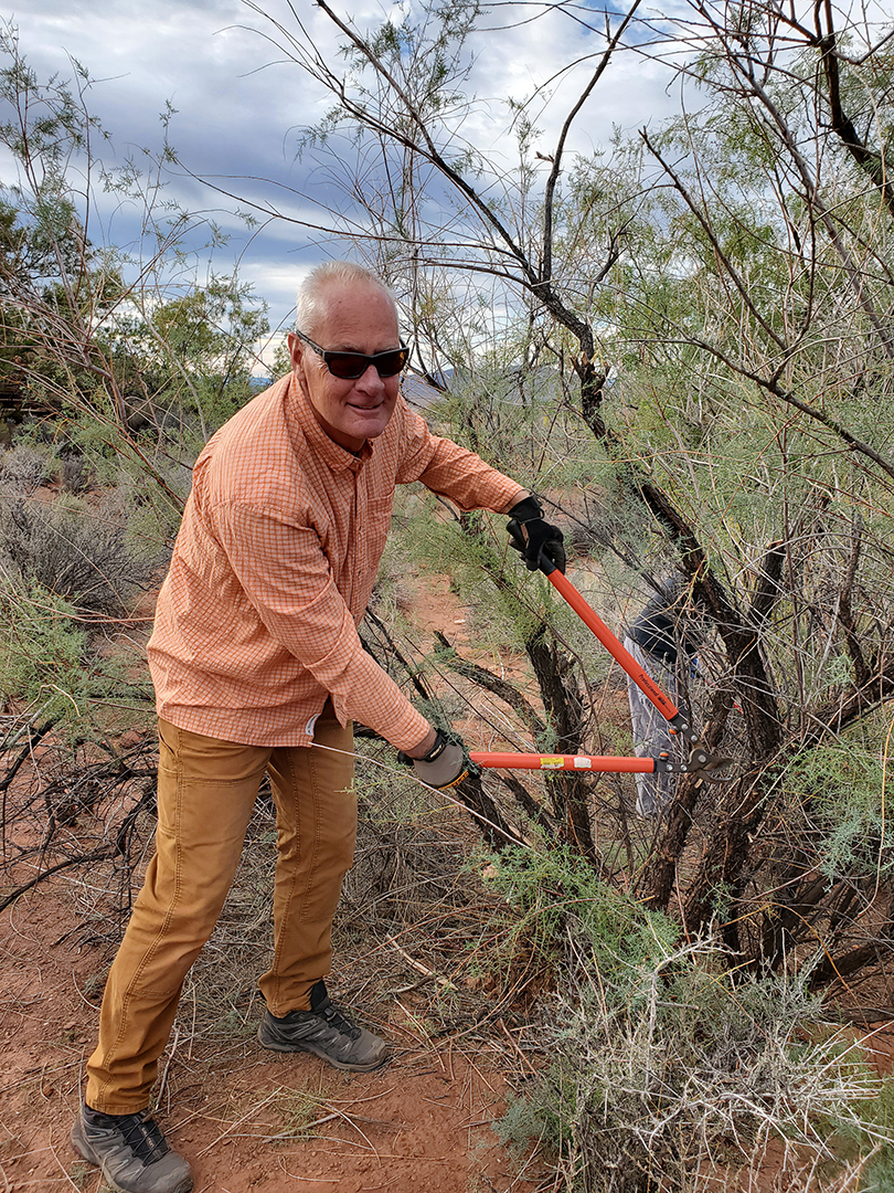 Scott Florence, who spent 38 years with the Bureau of Land Management, including dealing with invasive species such as tamarisk in five states, was motivated to join in “to help improve the natural habitats that we live in. Helping to rid our area of invasive species such as tamarisk is a no-brainer for me,” he says.